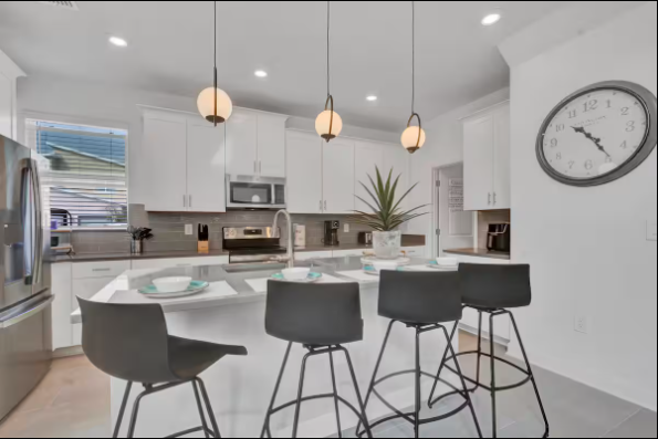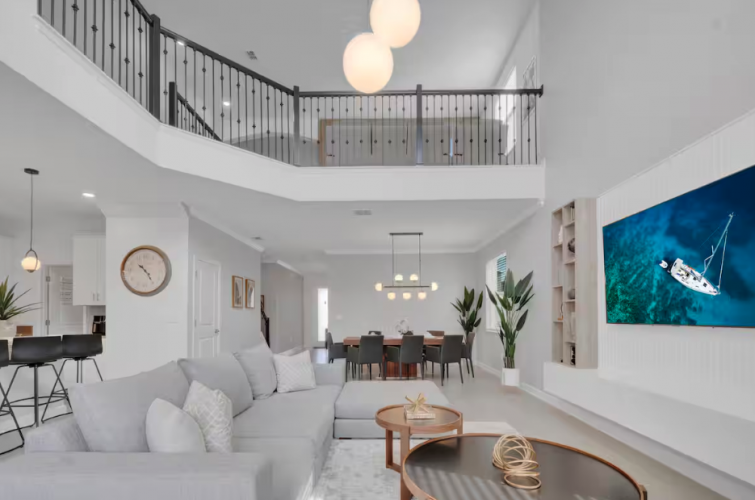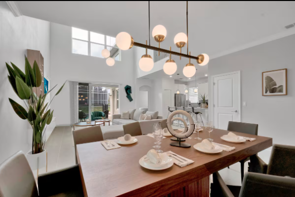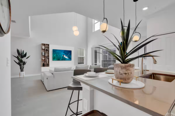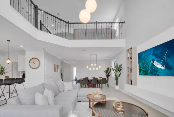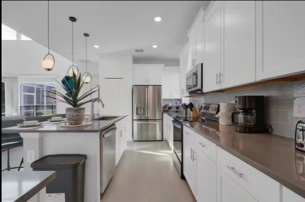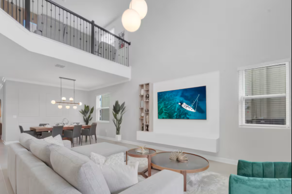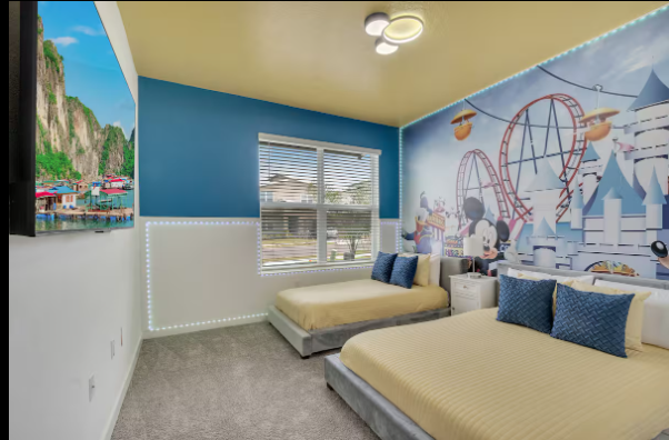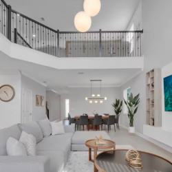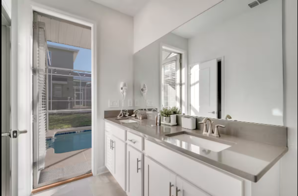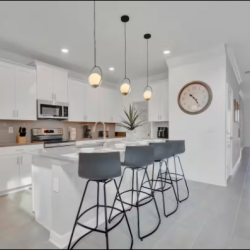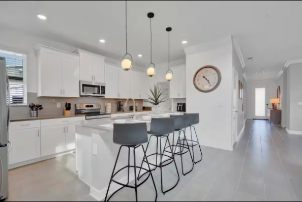 This stylish brand new villa featuring two master bedrooms. Enjoy this 5 bedrooms 5 bathrooms home with everything you need for your vacations. House is in Champions Gate, a golf community, 20 min to Disney and all local attractions. Amenities include pool, spa, water park, tennis courts, arcade, supermarkets, restaurants, and everything you need few min away from the resort.